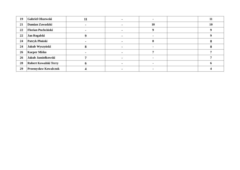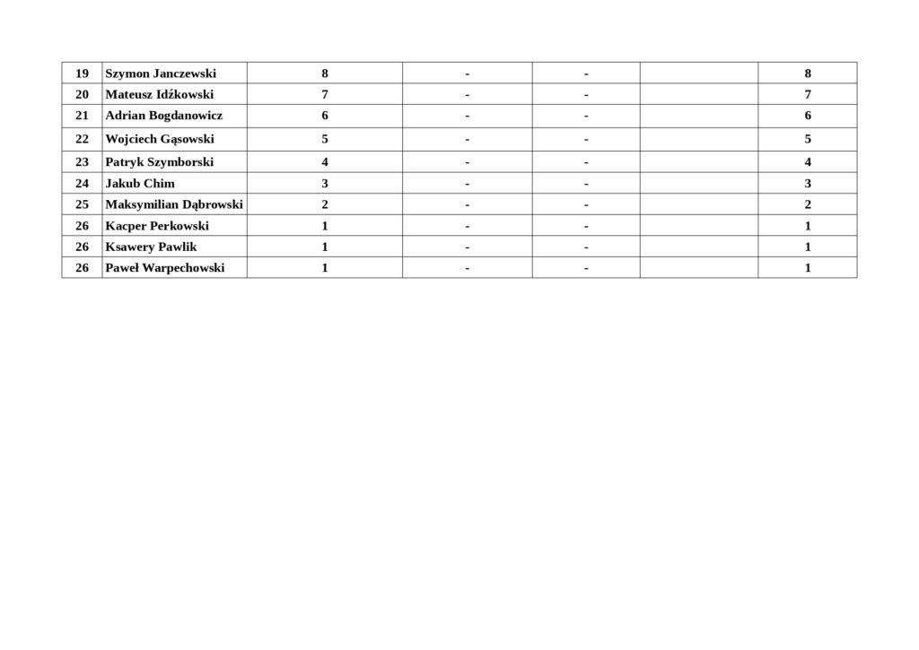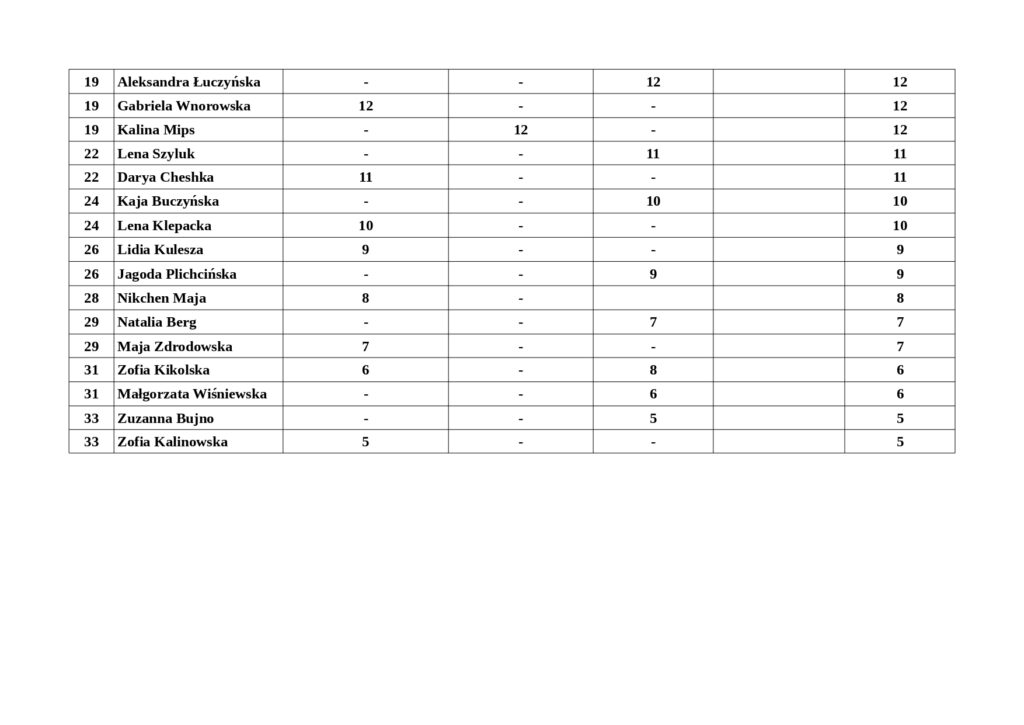 Wszelkie uwagi co do punktacji i rankingu prosimy wysyłać na: okf@okf.lapy.pl