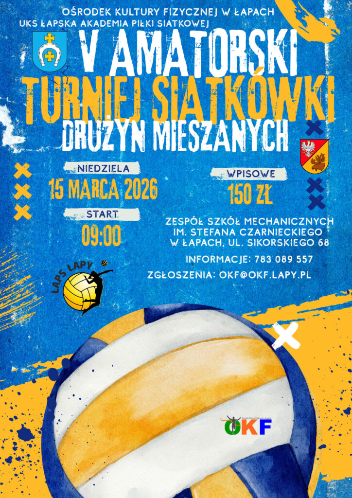 V Amatorski Turniej Piłki Siatkowej Drużyn Mieszanych Łapy, 15.03.2026r.